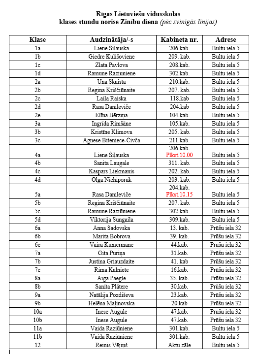 Bultu iela 5 - tālrunis +371 67043694, Prūšu iela 32 - tālrunis +371 67474672, E-pasts: rlvs@riga.lv